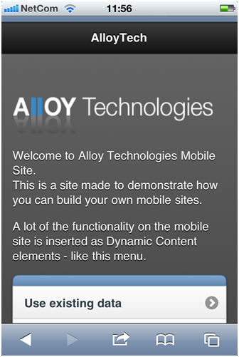 - Google Maps for Mobile included in the sample site to show stuff like “nearest store locations”. You simply add a “Location Viewer” page type and below that pages with the individual locations to show on the map.