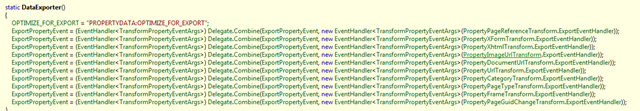 The other problem is that before all properties had 2 sides. One data container side, and one display/edit side. With the stuff in the DataExporter you have introduced a 3. side. And left us developers with (as I can see) any methods to add code to this side. In the past you (Mr EpiServer) have been reluctant to change code since it will break existing project. This new code breaks that rule big time.