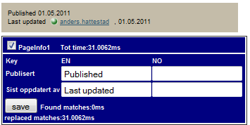 The concept is simple. All text within {{text}} will be added to a dynamic data store table, where it’s possible to specify new text. Either change the text, or make a translation. The original text is uses as the key, so different areas that use the same key will share the translations. The data store class looks like this: