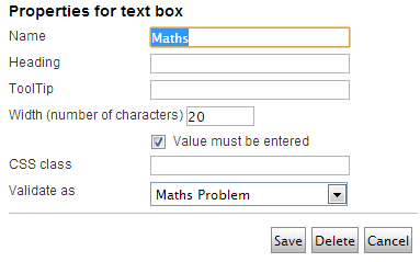 This implementation adds a new XForm data type of ‘Maths Problem’ which you can put on your form: