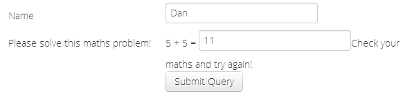 As using these is quite a heavy thing to implement, I decided to find a simpler solution. One alternative that is cropping up in a few places is the ‘maths problem’ approach. It’s a very simple sum (one that even my six year old son could do easily) but one that the spammers haven’t fully exploited yet with an automatic solver. I’m sure they will, but right now if you avoid the big company implementations which are targeted for cracking, then you can avoid the worst of the bot-based spam form submissions. Because it’s so simple, it’s easy to write an AddOn that intercepts the XForm calls and sets up a sum to solve.