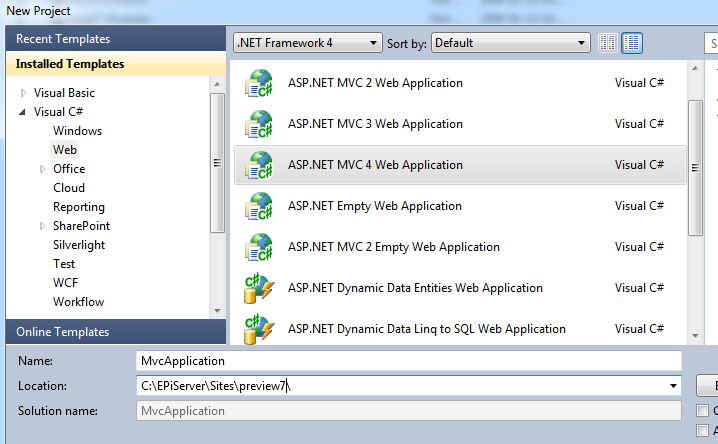 If you install a site with the Alloy Tech templates, there is a zip module that adds MVC samples to the site. But what if you want to build MVC templates, but not install the Alloy Tech templates? I.e. have an empty site but with MVC tooling support. Here is what I did in order to get an empty MVC 4 project working with the EPiServer 7 Preview.