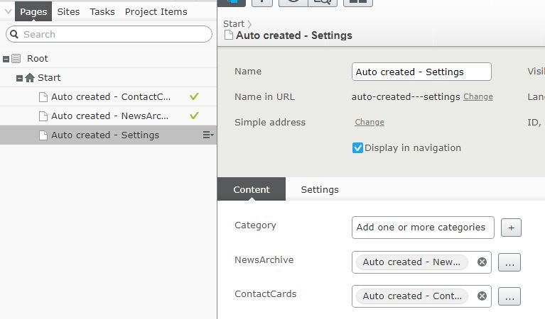 After publishing the settingspage we have a newsarchive and searchpage created
