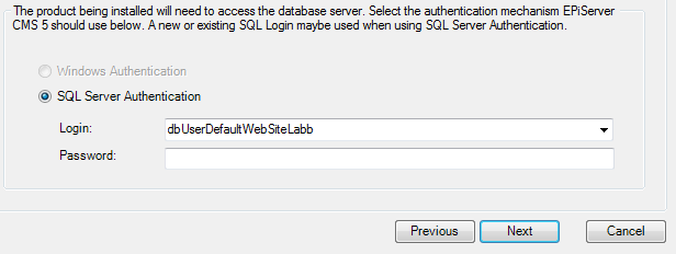 When installing EPiServer using Deployment Center I haven’t really figured out how to enable the the Windows Authentication button in the setup wizard. I usually install with a temp. Sql user and later on I change this to a Windows user with a trusted connection to the database.