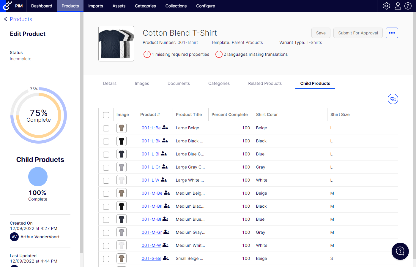 - Ensure that the parent and child products are approved. Because of the data conversion, the next time you publish data we will be creating new variant types in commerce. In order to avoid issues like children missing from commerce, you will want to ensure that both the parent and child products are published together. As part of the data conversion we automatically update all published variant products to a status of approved, but if you make changes and do not approve the products you could end up with products missing from your site.