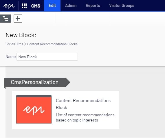 If you haven’t already, you will need to install the EPiServer.Personalization.Content.UI NuGet package. In addition to installing the Content Recommendations connector, and adding the tracking scripts to your pages, it also adds a new block type model and view for rendering the recommendations.