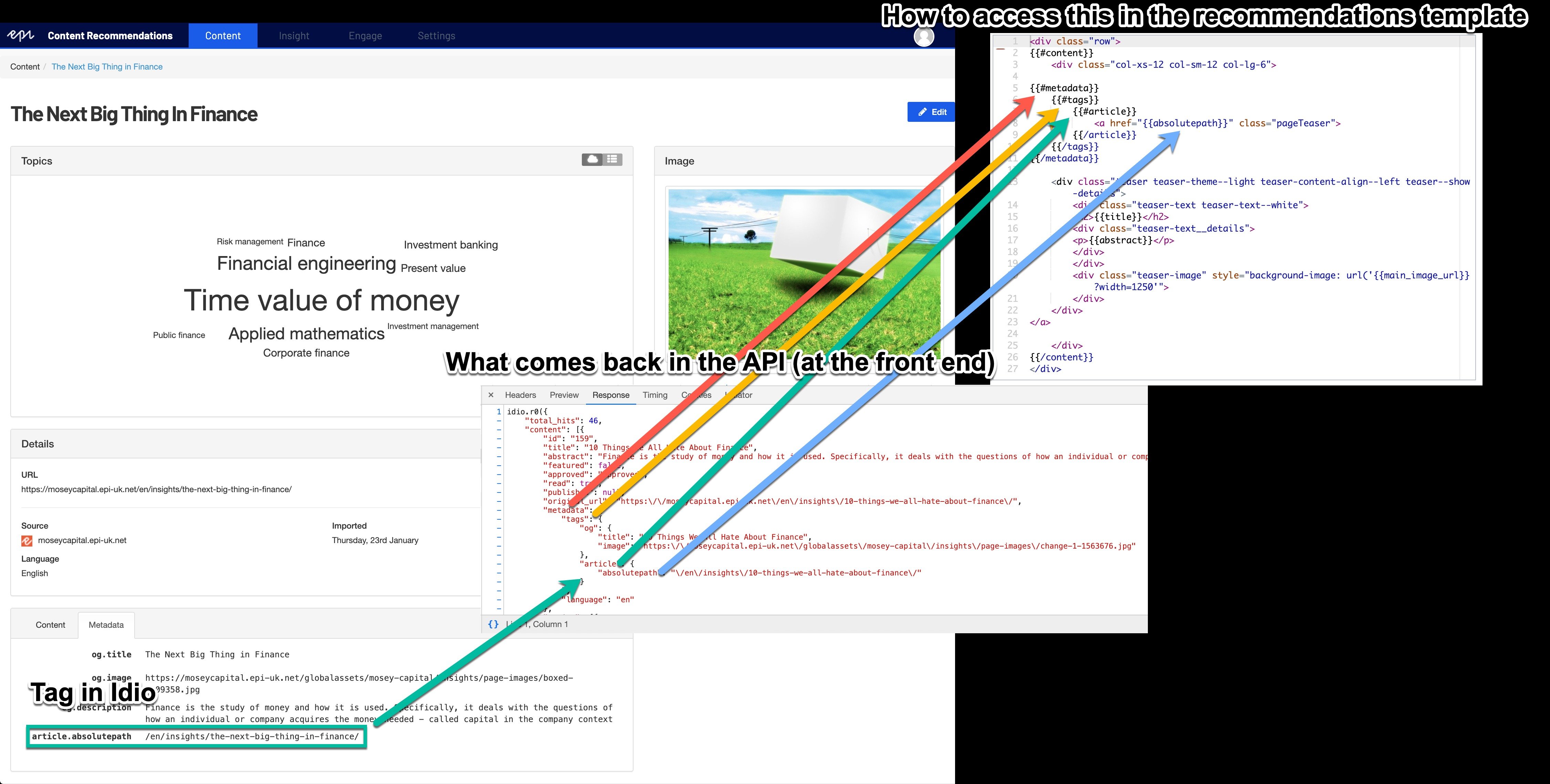 Pro tip: A little bit of planning at this point in the process will save a lot of time later. Look at the end-result designs you want to use for the recommendations. What information do you want to display? Where that information is coming from? It's easier to add these metatags before you start tracking, rather than after.