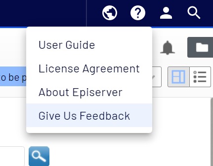 In EPiServer.CMS.UI 11.31.0, a new option "Give Us Feedback" is added to the help menu in the top platform navigation.