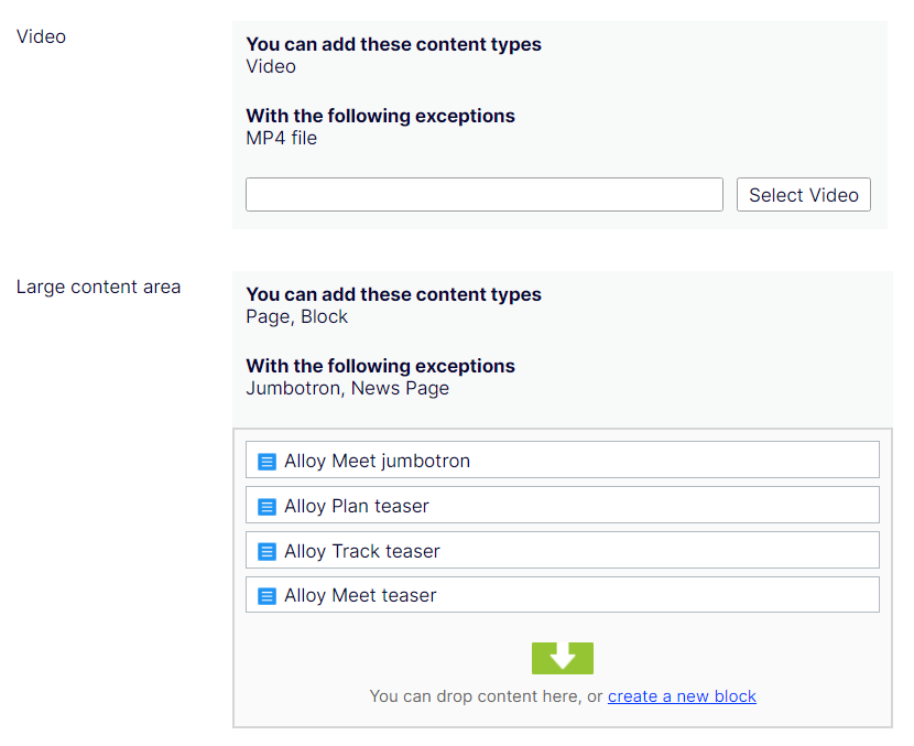 You can see which content types you are allowed or disallowed to add to the current ContentArea or ContentReference, the same way ContentReferenceList has.