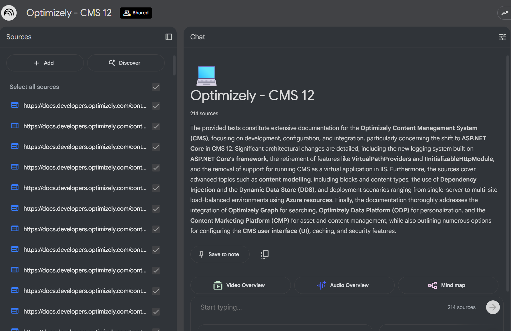 - Import each of the Optimizely document sections in to a NotebookLM for querying