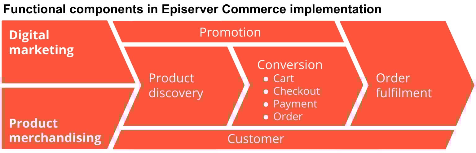 Therefore, in any Episerver Commerce implementation, developers will have to provide the following functions which can be grouped under one of above 7 functional components.
