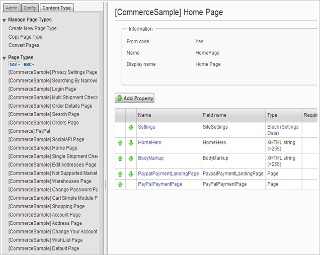 - Add a property named PayPalPaymentPage of the type Page to the Home page page type