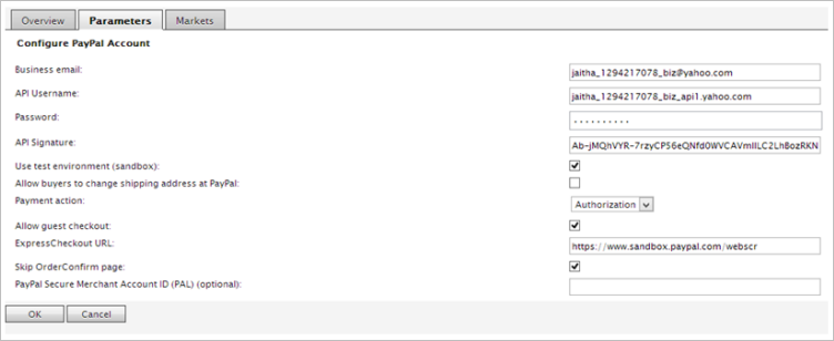 - ExpressCheckout URL: The URL to redirect a user to PayPal when the SetExpressCheckout API call is successful. Note that this URL should change according to the Use test environment option.