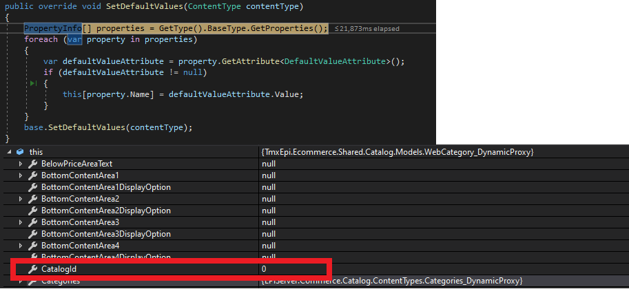 The following implementation isn't the one that supports the Catalog specific but shows the CatalogId not being set when I'm trying to define other values based on it.