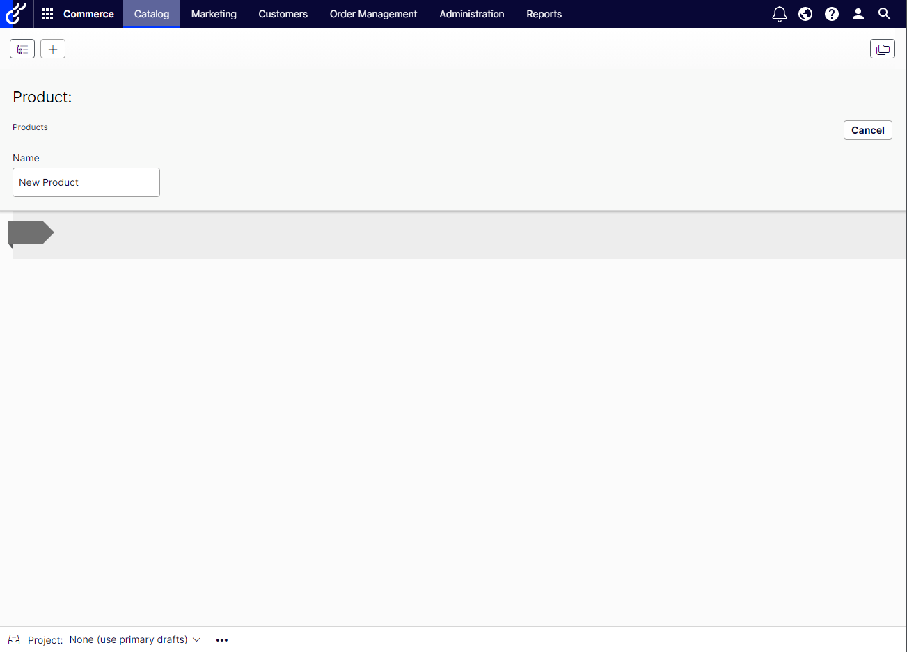 I have different page types and other content on my Commerce Alloy site, except there are no products. When I try and create one, there is no publish button. I have a catalog created, but any other thing in this drop down leads to the same issue of unable to create category, variant, product, etc. What configuration do I need to make this work properly? There is a ProductPage.cs already existing