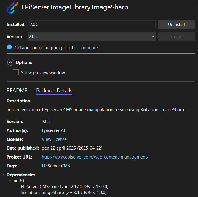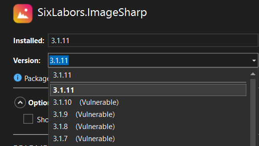 The same problem exists on ImageLibrary.ImageSharp package as well where the minimum supported version is resolved automatically, which is marked as vulnerable: