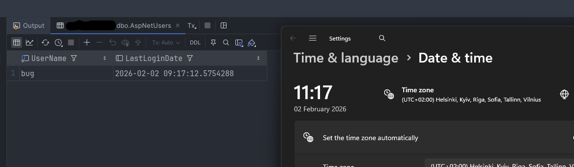 When user logs in, their last login date is saved to database as UTC time.