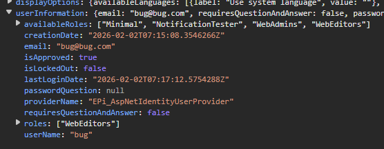 The bug seems to originate from "/EPiServer/EPiServer.Cms.UI.Admin/users/GetUser?userName=bug" API which subtracts 2 hours from the last login (suggesting that this API treats already UTC time as local time):
