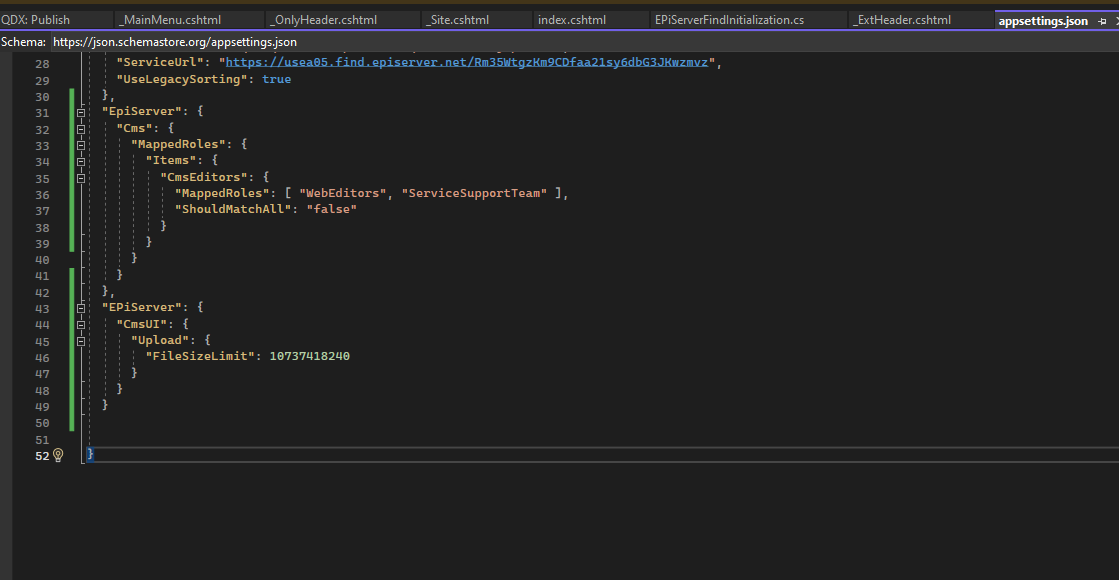 You configuration looks correct to me. I suspect you have virtual role mapping defined in appsettings.Development.json too and the MappedRoles has different value compare to appsettings.josn's one. If above assumption is correct, you can either remove virtual role mapping from appsettings.Development.json OR add ServiceSupportTeam in MappedRoles to appsettings.Development.json file. In ASP.NET Core application, appsettings.{Environment}.json values override keys in appsettings.json by default
